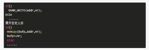 然后执行循环,而且该循环仅仅执行一次,这个宏定义似乎很奇怪,但是确实很巧妙,我们假设,如果不用这个do..while循环会如何?如下所示