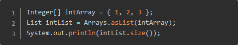 前面说过,可以将需要转换的数组作为 asList 方法的参数。假设现在需要转换一个整型数组,那么我们可能会这样写: