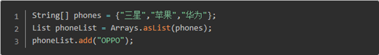 尝试运行这段代码,结果抛出了一个 java.lang.UnsupportedOperationException 异常!这一异常意味着,向 phoneList 添加新元素是不被允许的;如果试图从 phoneList 中删除元素,也会抛出相同的异常。为什么会如此?