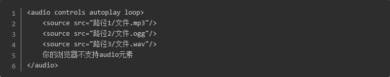 在audio标签之间插入文字,可用于在不支持该标签的浏览器的显示文字提醒用户。