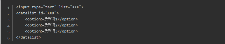 用于定义选项列表,与input标签搭配食用,可以定义input可能的取值。