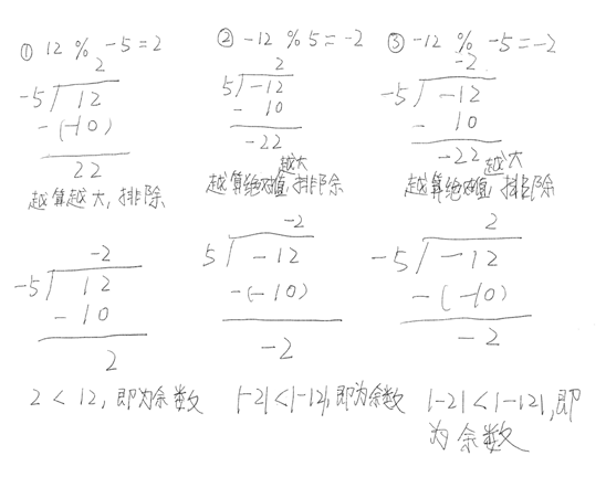 按照徐老师所说:负数取模结果符号与第一个操作数有关