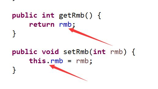 在类中定义方法,并且需要返回值时,如果没有从外界传来与这个类中定义的变量重名的形参时,可以直接返回变量名,否则要在前面加上this.,代表是这个类的变量