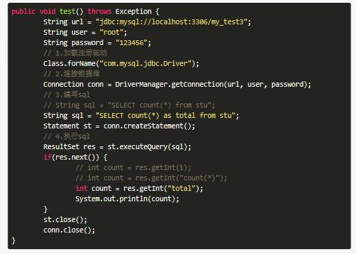 把SQL语句发送到数据库中去执行。并返回执行的结果