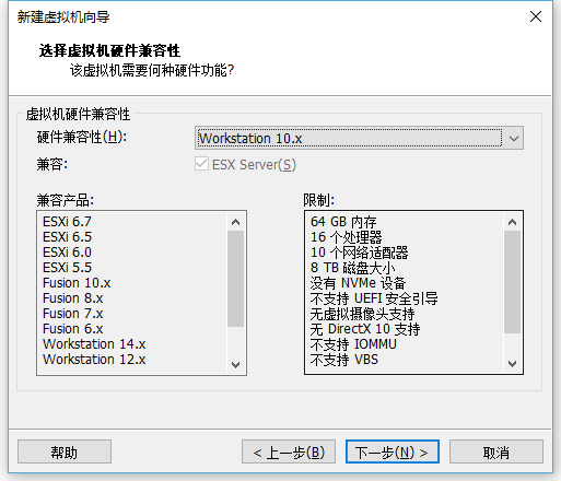 选择硬件兼容性,这里我们选择Workstation10,这里是笔者使用习惯了吧,总感觉最新的不稳定,当然了,如果我们要安装CentOS7的话或者最新版Ubuntu,肯定是选择12,这个可以多做尝试,这是只是说,10在我的一直测试使用中是没有问题的。