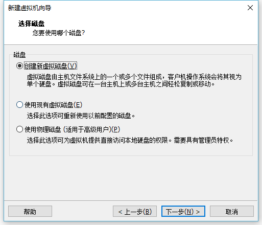 这里选择创建新的虚拟磁盘,虚拟磁盘就类似我们真机的硬盘