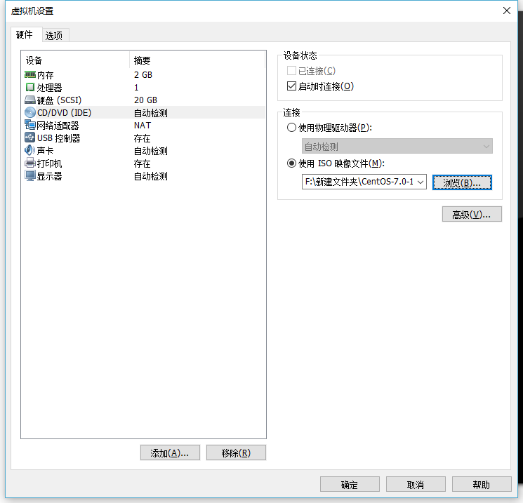我们这个的光盘不是真正的光盘,我们知道,真机要播放光盘,首先要有一个光盘驱动器,然后才能放置光盘,我们虚拟机可以使用真机的光驱,但这样是没必要的。比如我们要安装操作系统,只要在网站上下载需要的光盘的镜像文件,以iso结尾的文件。然后加载到虚拟机的虚拟光驱中就可以了。如何加载ISO呢,选中刚才创建的虚拟机,点击菜单栏的虚拟机--设置