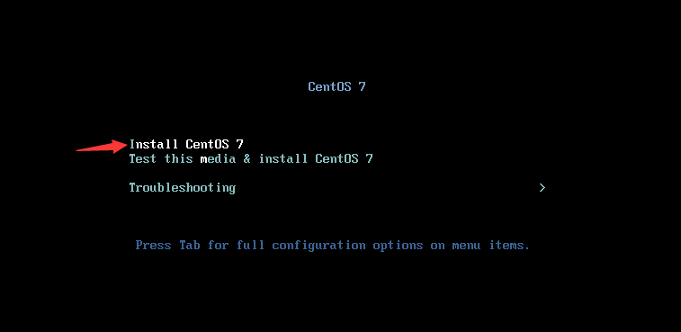 (1)选择界面第一项“Install ContOS 7”后回车确定。