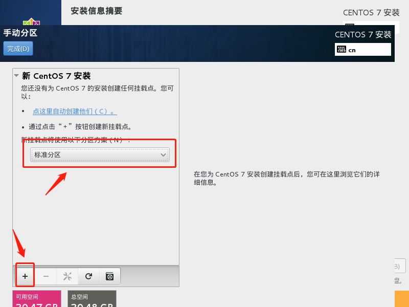 (5)选择“标准分区”,然后点“+” 新建分区。