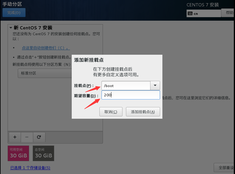 (6)新建boot分区,大小为200M