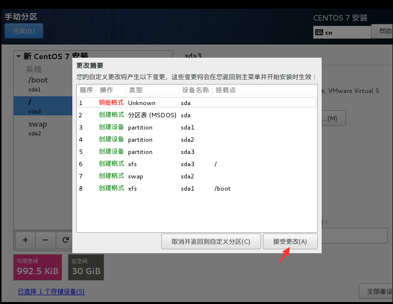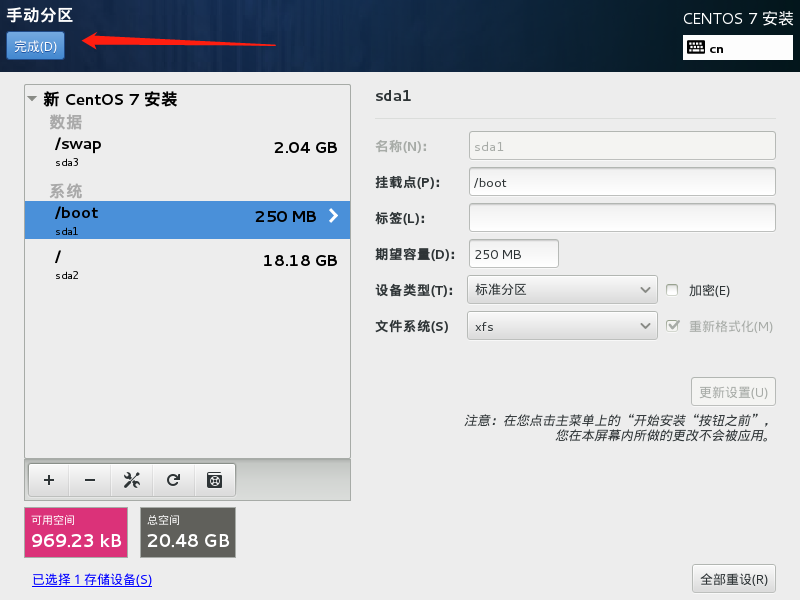 (9)手动分区完成,查看一下分区情况,点完成即可。