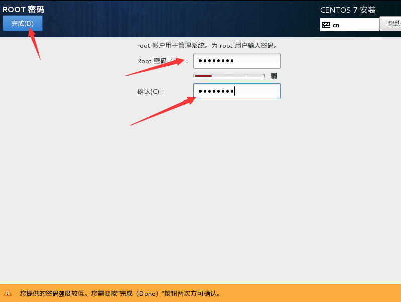 (11)安装过程中可设置root用户密码,和新建用户。此时可不用建用户。