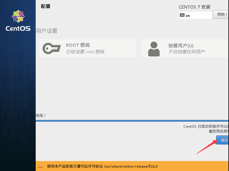 (14)安装过程完成重启机器。