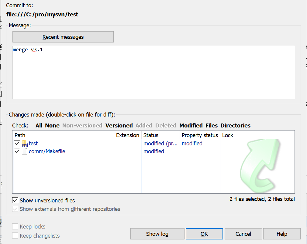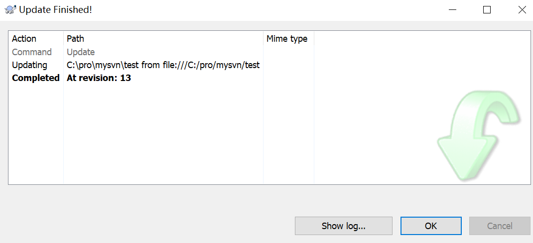 - 出现下图的合并提示,表示本地库上的已经合并到最新; 下一步将trunk 发布最新合并内容。