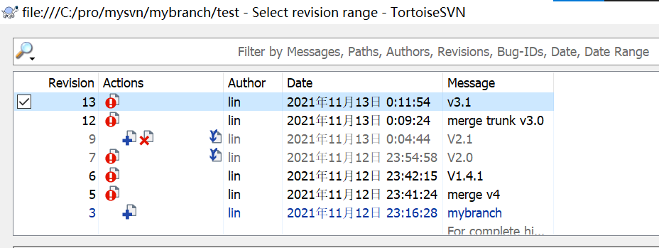 From URL表示 你开发的分支目录地址(如果你是trunk合并到branch就将路径修改一下即可)