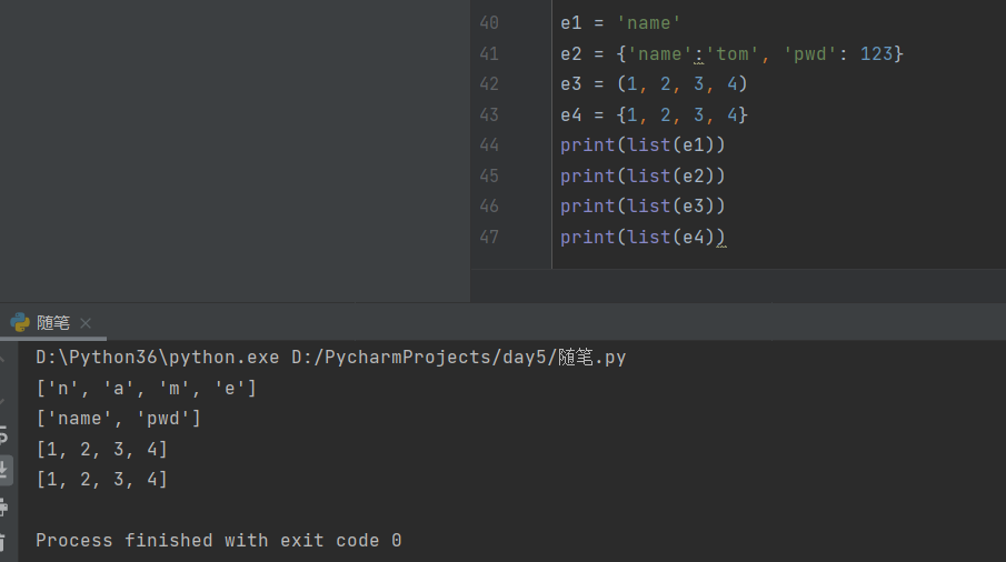 list关键字可以将支持for循环的数据类型转化成列表,如字符串、字典、元组、集合等。