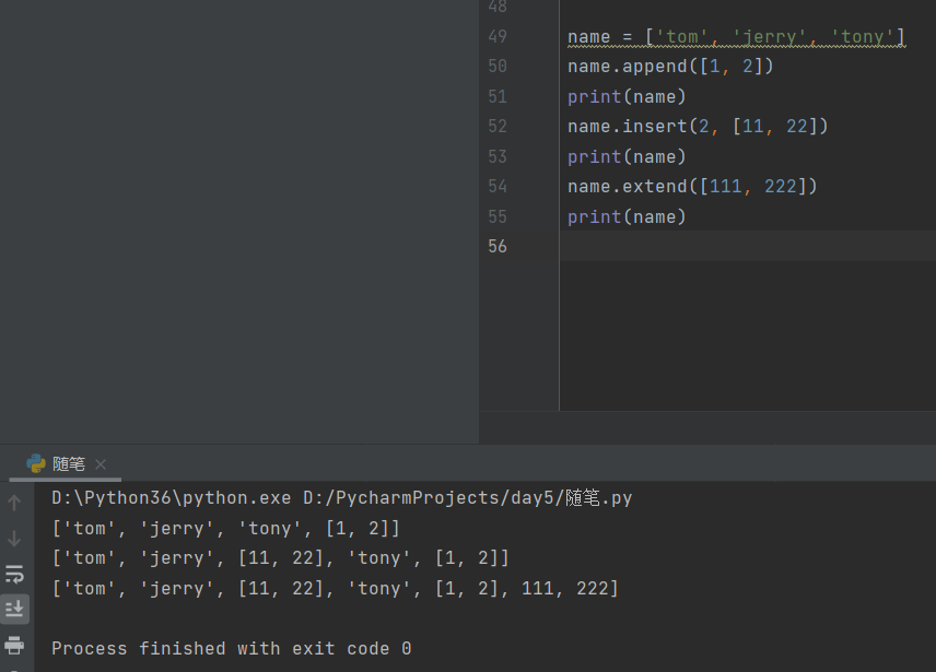 extend方法可以将括号内的数据逐个加入到列表中。(相当于for循环+append的操作)