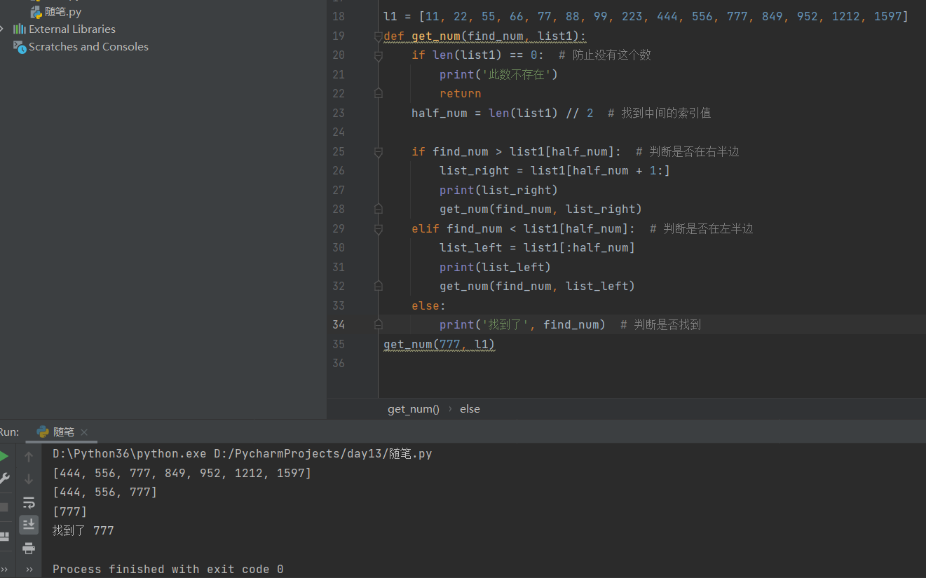 找到这堆数字的中间的数,将它与要找的数进行大小的比较,如果较大,则在较大的一半中继续切分。