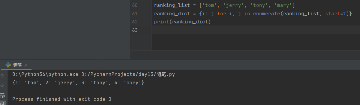 如果想只通过一个列表就生成字典,可以借助enumerate方法(枚举)。