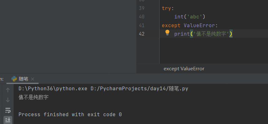 代码运行出错会导致异常,异常发生后如果没有解决方案会直接结束整个程序。