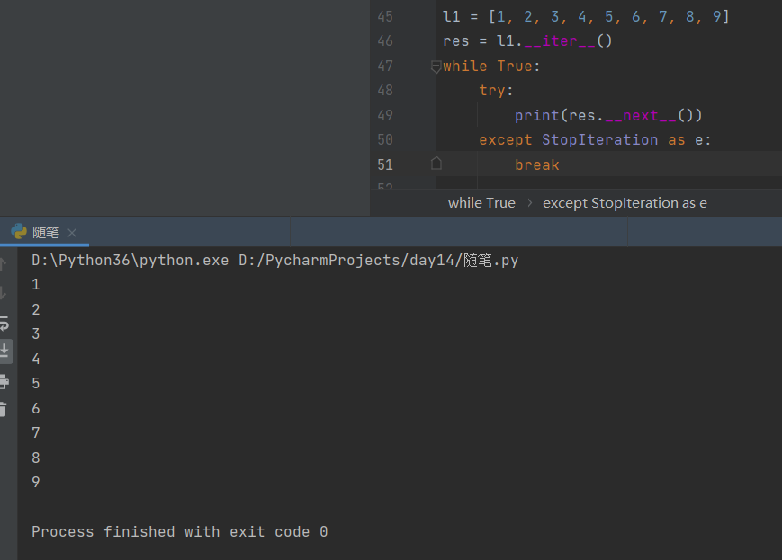 3.取完之后__next__方法会报错,然后利用异常捕获机制捕获该错误并处理。