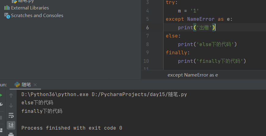 else的作用是当异常捕获不触发时会输出else下的代码。