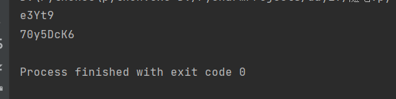import random # 定义函数 def captcha(num): # 建立一个空字符串 code = '' # 根据参数确定生成几位数的验证码 for i in range(num): # 随机生成一个数字 num_code = str(random.randint(0, 9)) # 随机生成一个大写字母 upper_code = chr(random.randint(65, 90)) # 随机生成一个小写字母 lower_code = chr(random.randint(97, 122)) # 随机在生成的数字或字母中挑选一个 code1 = random.choice([num_code, upper_code, lower_code]) # 将挑出的字符加入字符串中 code += code1 # 返回字符串 return code # 生成任意位数的验证码 print(captcha(5)) print(captcha(8))