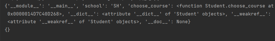 class Student(): # 定义一个共同属性 school = 'university' # 定义一个技能(函数) def choose_course(stu_dict, course): stu_dict['course'].append(course) print('%s选课成功 %s' % (stu_dict['name'], stu_dict['course'])) # 查看类的名称空间 print(Student.__dict__) # 产生对象 # 调用类产生对象,默认产生的就是一个空对象{} stu1 = Student() print(stu1.__dict__)