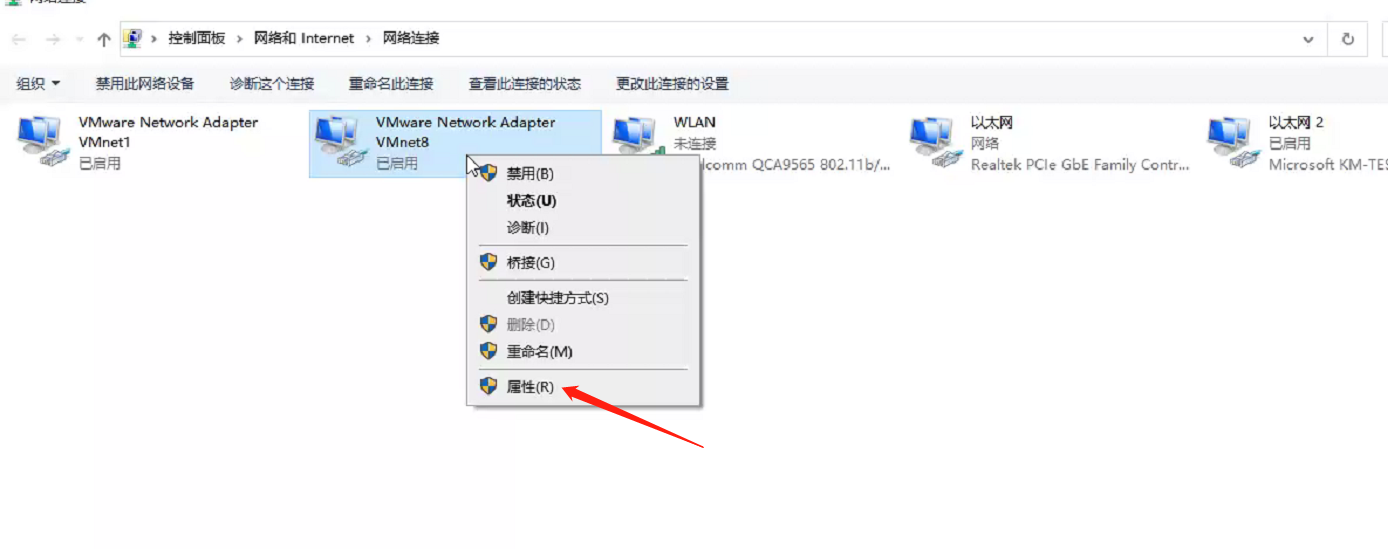 在控制面板界面打开网络设置,选择更改适配器选项,设置VMware属性。