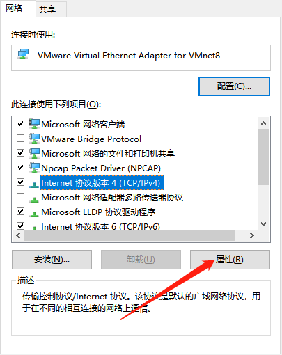 选择Internet协议版本4(TCP/IPv4),点击属性