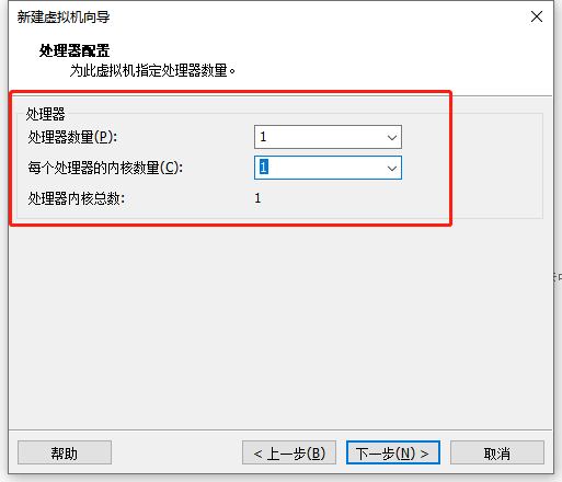 为虚拟机指定处理器数量,处理器内核总数等于处理器数量乘以每个处理器内核数量可以多个但一个一般就够了。