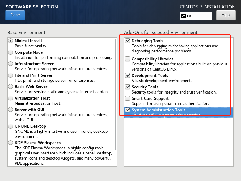 点击SOFTWARE SELECTION设置安装的软件,选择下图的软件。