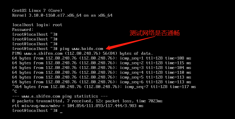 之后等待安装完成后可以ping www.baidu.com测试网络是否通常。