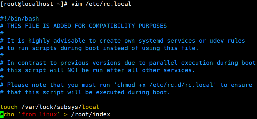 文件目录为/etc/rc.local,作用为在系统启动后,读取文件中的命令,从而实现一些操作随系统启动自动运行。