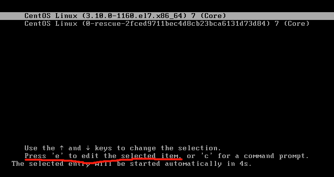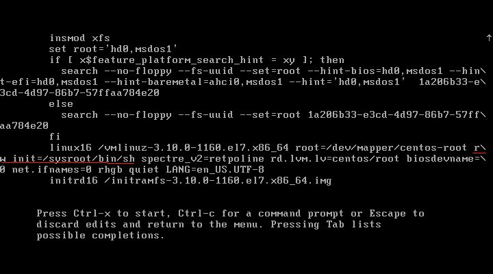3.找到linux16开头行,删除ro,并且在ro处添加rw init=/sysrootbin/sh