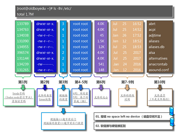 inode是每个文件的唯一编号,但系统中的inode编号是有限的,当inode分配完之后,再新建便会报错。