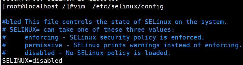 永久关闭:修改 /etc/selinux/config,将SELINUX改为disabled