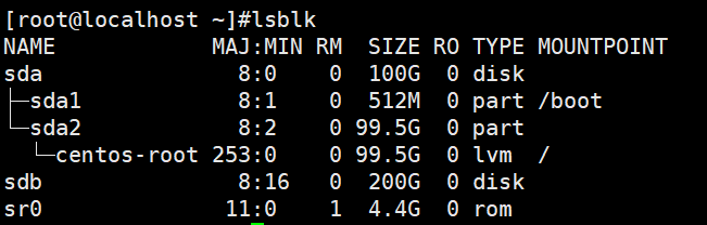 重启虚拟机,使用lsblk命令确认磁盘是否加载成功