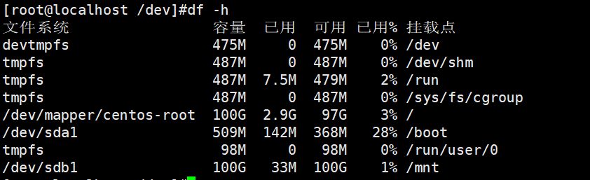 df -h:以合适的单位显示系统磁盘的空间信息和分区