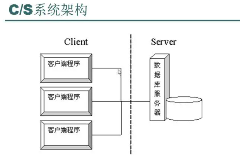 C/S即Client/Server(客户端/服务器)结构,简单来说就是需要下载并且安装专用的客户端软件才能运行(例如手机中的各类app),并且服务器端也需要特定的软件支持,并采用大型数据库系统。