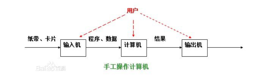 1946年第一台计算机诞生--20世纪50年代中期,计算机工作还在采用手工操作方式。此时还没有操作系统的概念。