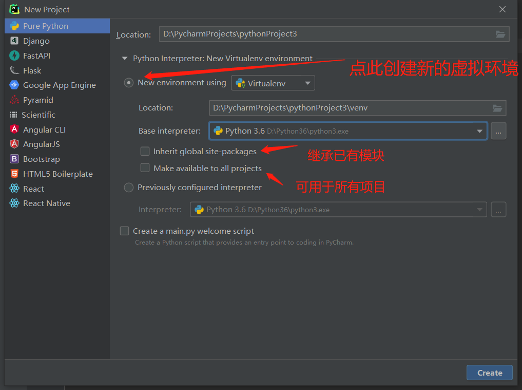 你每创建一个虚拟环境就类似于重新下载了一个纯净的python解释器。
