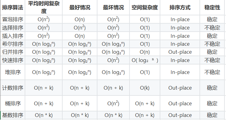 - 外排序(Out-place):由于数据太大,因此把数据放在磁盘中,而排序通过磁盘和内存的数据传输才能进行。