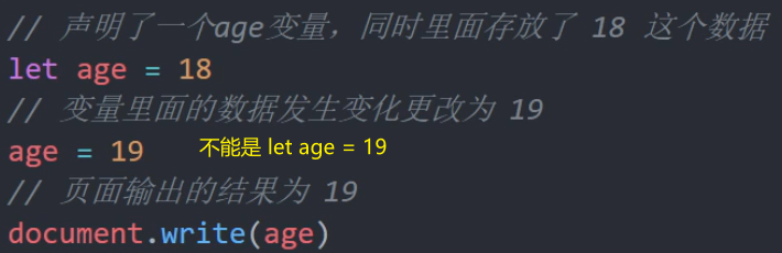 - let 即关键字(let:允许、许可、让、要),所谓关键字是系统提供的专门用来声明(定义)变量的词语