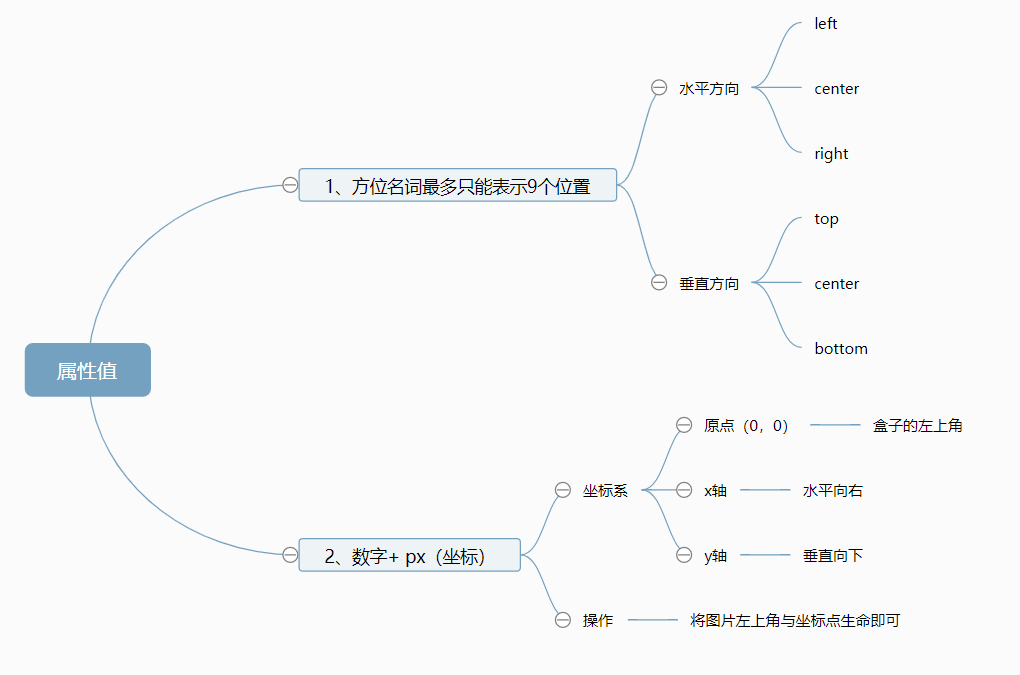 /* 水平方向位置 垂直方向位置 */ background-position: x y;