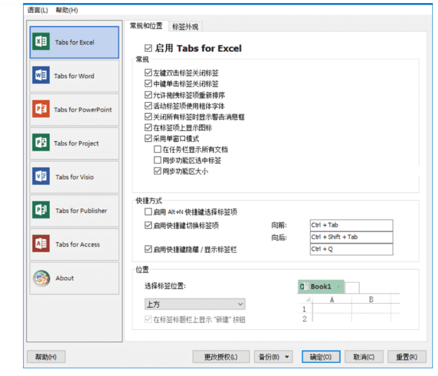 OfficeTab插件是一款微软Office多标签页插件,轻松实现Office标签页效果.Office Tab Enterprise是款付费的Office扩展插件,OfficeTab企业版支持自定义标签外观,标签显示位置,标签关闭方式,拖拽标签等增强设置.