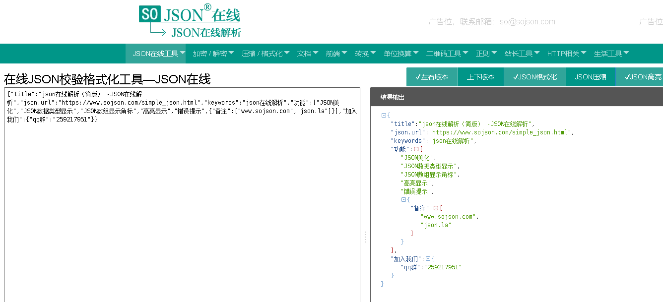 当你有一串很乱的json串不可读时,可通过此工具得到一串工整的json串,便于阅读
