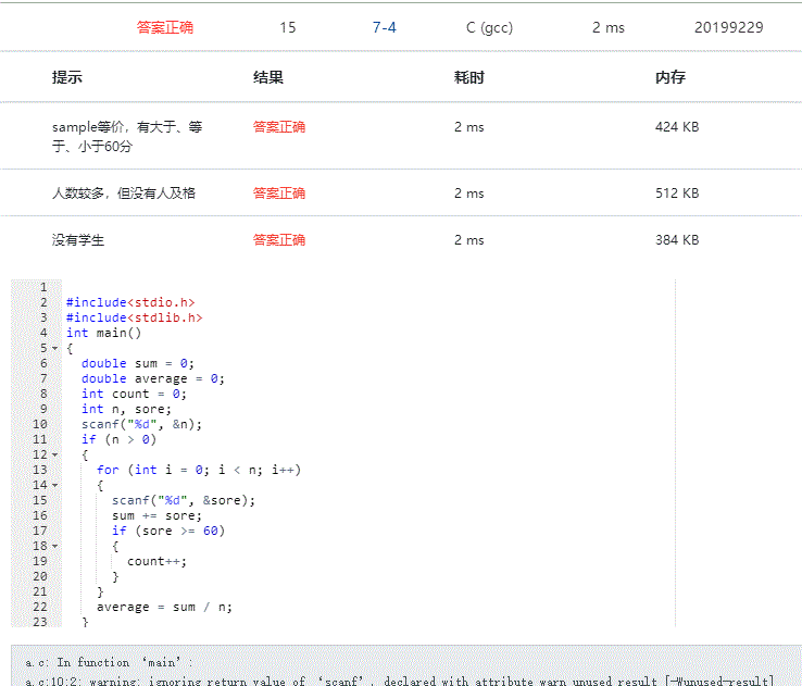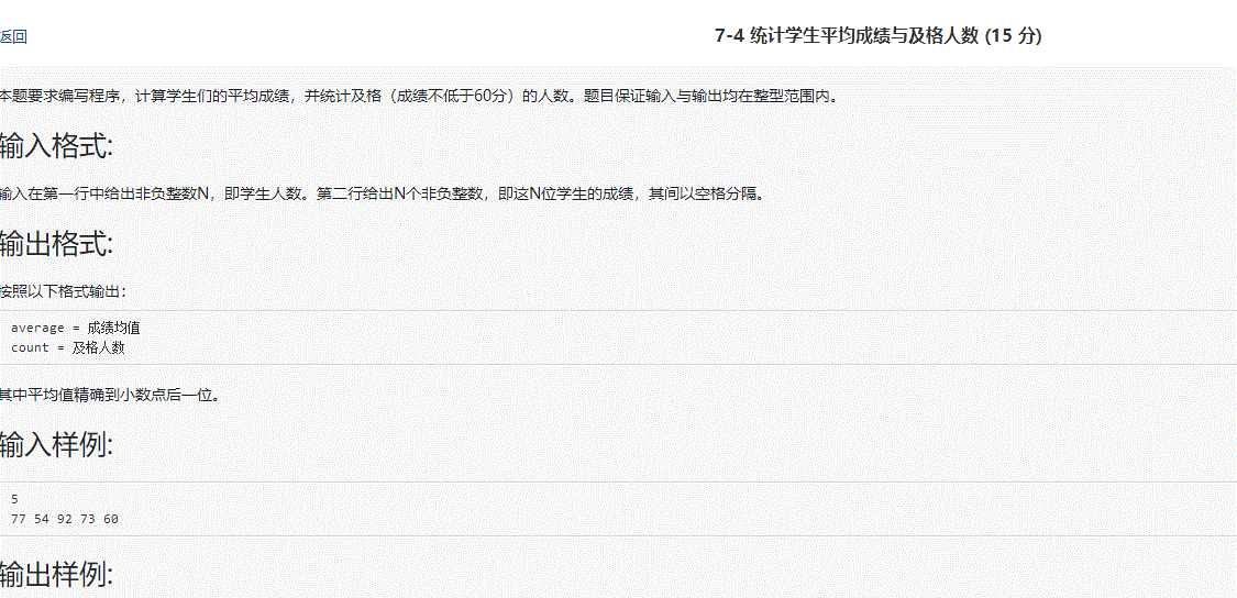 | 5 77 54 92 73 60 | count=4,average=71,2 | 题目实例 |