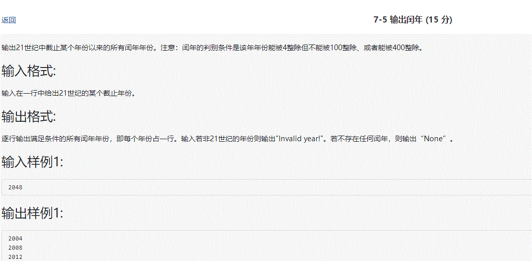| 2048 | 2004 ,2008,2012,2016,2020,2024,2028,2032,2036,2040,2044,2048 | 题目样例 |