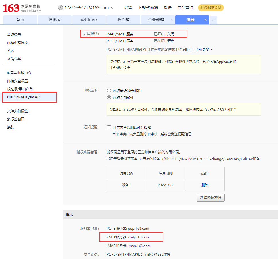 邮箱开通SMTP服务